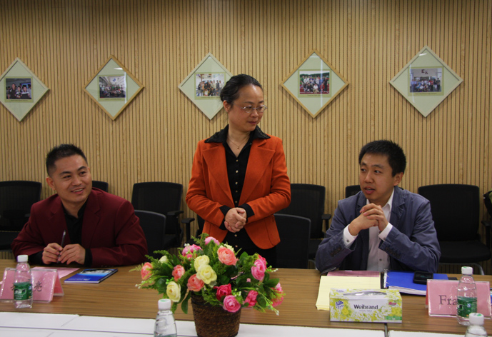 2号早上9:00,陈曦校长,孙明亮主任、Trevor主任及学生代表在三楼会议室为远道而来的美国面试官及高管接风洗尘。主持人杜枚枚和王佳钰为客人们简单介绍了广州的特色建筑及饮食文化。校长和主任为他们介绍了国际部的基本情况。