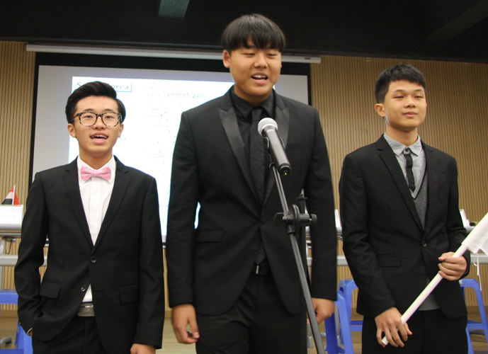 Ben为大家介绍了这次的三个议题:1.Global security(是否集合各国军事力量反对ISIS。) 2.Environmental Crisis(是否停止在地球开采燃油,去其它星球开采。3.Education(是否使用科技带动教育。) 担任各国代表的是group3(水平三班)和grup4(水平四班)的同学,根据议题分为三组。 每个议题开始前,Ben先为大家讲解议题内容,然后请各国代表起来陈述自己国家的观点,表明自己的立场。观点陈述完毕后,进入自由辩论阶段,这个阶段可以重申自己的立场,也可以向不同立场的国家提问。这个阶段,各代表充分地展示了他们流利的英语口语,严密的逻辑、敏捷的思维,雄辩的口才,针锋相对而不失风度,赢得了面试官及全体师生家长的阵阵称赞声。