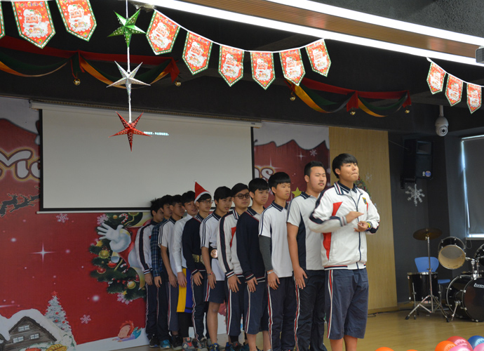最后的压轴节目是由国际部学生政府成员表演的《JINGLE BELL》。每个成员头上戴着一对可爱的鹿角,手上带着铃铛,当他们不断变换,身上的铃铛也随着身体的摇摆发出清脆悦耳的响声,为现场增添了喜悦的气氛。