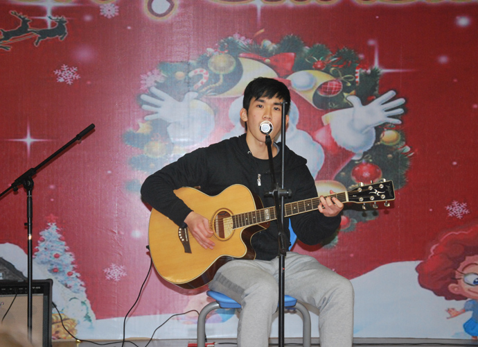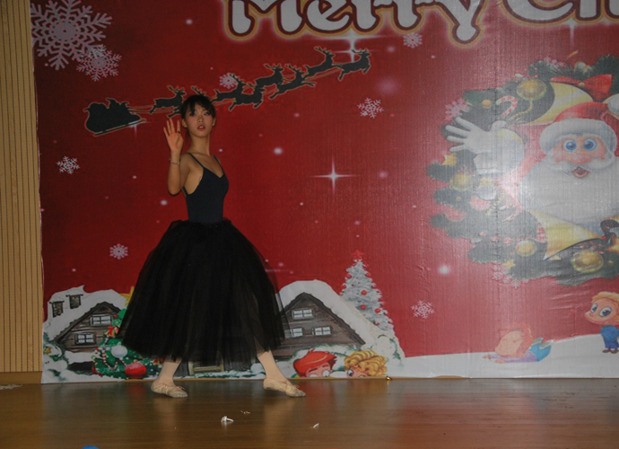 中午1点,圣诞节节目在学术报告厅隆重上演。节目分为舞蹈类、音乐类、小品类及游戏。
