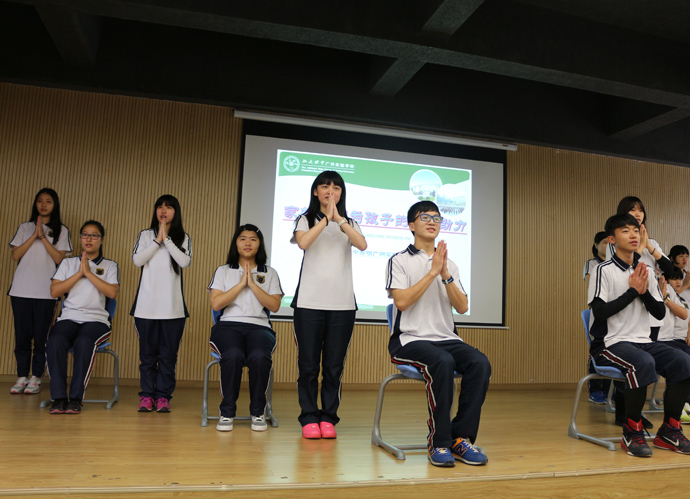 学生政府成员表演手语《感恩的心》拉开家长会的帷幕。