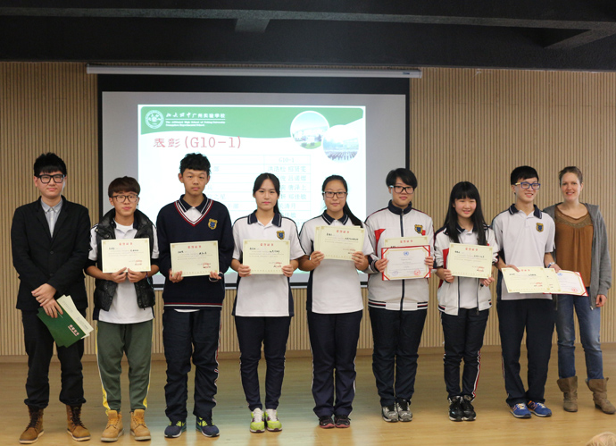 G10-2 优秀班干部:王佳钰、吴羽茜 进步之星:林雨薇、陈东宁 文体标兵:聂钰丁、徐钵轩 文明礼仪之星:杨凯伦、施世标 学生政府优秀干部:王佳钰 优秀宿舍长:杨凯伦 G10-3 优秀班干部:源启维 李莉珊 进步之星:李彤欣黄有成 文体标兵:陈俊全梁隽 文明礼仪之星:陈聪郭雨珊 学生政府优秀干部:陈颖钰 G11 优秀班干部:陈瑞霞、黄俊翔 进步之星:黄泽明、段秦川 文体标兵:莫沛峰、李居腾 文明礼仪之星:郑昊铧、吴晨曦 学生政府优秀干部:杜玫玫、陈瑞霞 优秀国旗手:黄俊翔 优秀宿舍长:陈瑞霞 表彰—模拟联合国优秀学生 MUNExcellent Students 招贤雯 莫沛峰 黄泽明 李居腾 马浩南 海珠区足球联赛优秀队员: