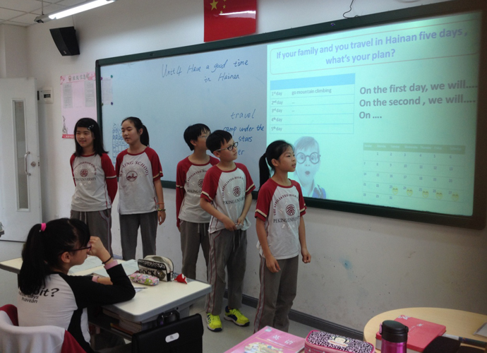 接下来是吴晟亮老师主讲的unit8 Ben’s first trip to Beijing,这是一篇谈论旅游计划的短文,老师着重以研究短文教学为范式,用任务教学的方式,带领学生由浅入深,由易到难,步步推进的教学模式,美美地在北京“逛”了一圈。在最后的复述检测环节,明显地展示了学生学习的良好效果。