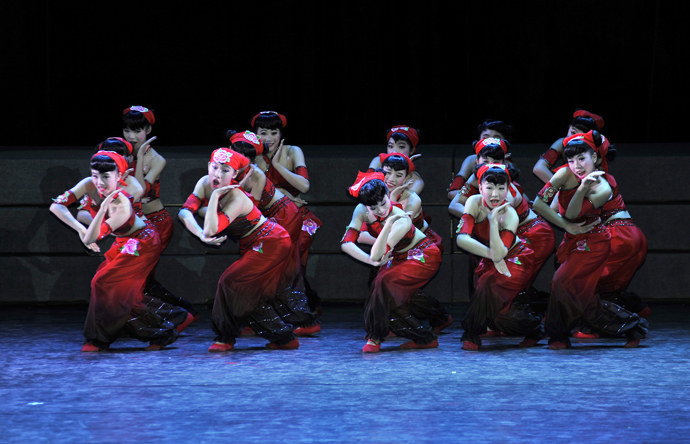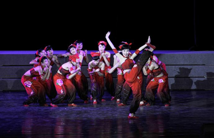 舞蹈《妞啊、扭》以秧歌音乐为动作元素,表现了少女天真活泼、积极向上的精神风貌。赛场上,初中舞蹈队的孩子们以优美的舞姿,传神的演绎,表现出了一群天真活泼的女孩们嬉戏追逐、无忧无虑的美好意境。她们天真烂漫、富于想象,对生活充满憧憬,与同伴们共同嬉游,其乐融融……