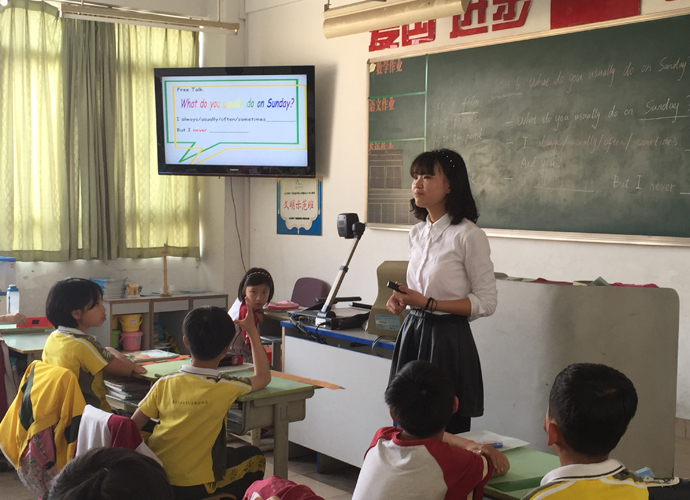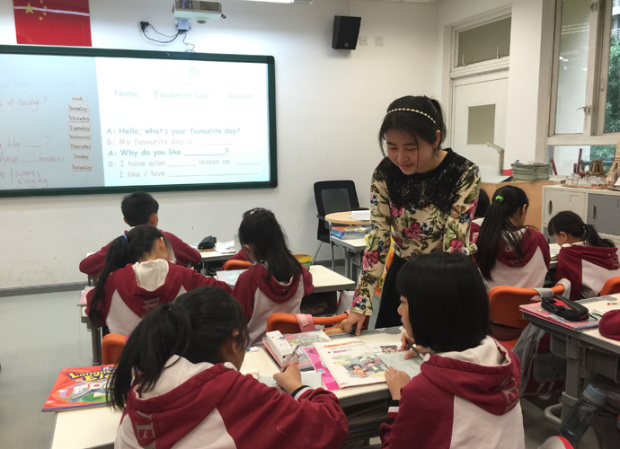 同样是从教不久的张妍老师,教态亲切活泼,教学目标清晰,层次分明,教学步骤紧凑,重难点突出,过渡自然。遵循任务型教学的原则,机械操练结合意义操练,设计新颖高效的学生任务,通过听说读写各方面的训练,很好地体现和落实了知识和技能目标。在春游活动的拓展环节,学生联系实际情况表达观点,小组讨论兴趣高,参与面广。
