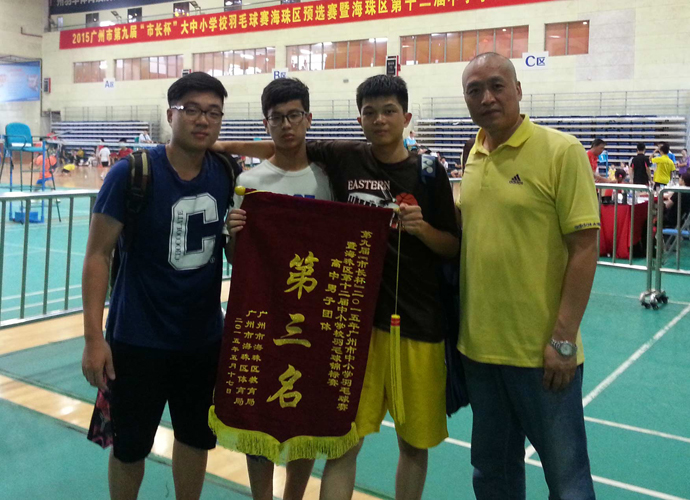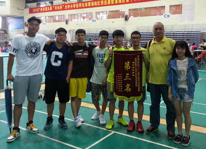 2015年5月16-17日,由海珠区体育局、海珠区教育局主办的2015广州市第九届“市长杯”大中小学校羽毛球赛暨海珠区第十二届中小学校羽毛球锦标赛,在海珠区体育馆隆重举行,我校高中部羽毛球队获得男子团体季军的好成绩。
