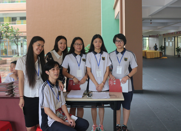 早上8点,准备充分的老师和学生志愿者在罗马家园打着伞引导外校学生和家长进入校园。他们的热情周到的接待驱散了来宾身上的凉意。