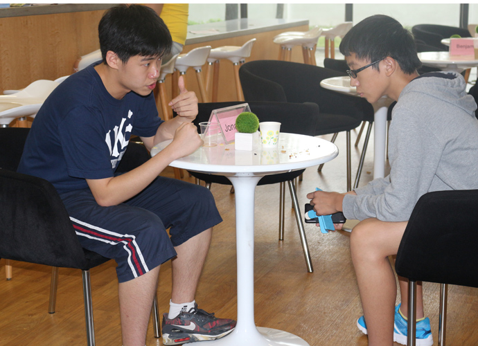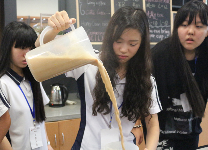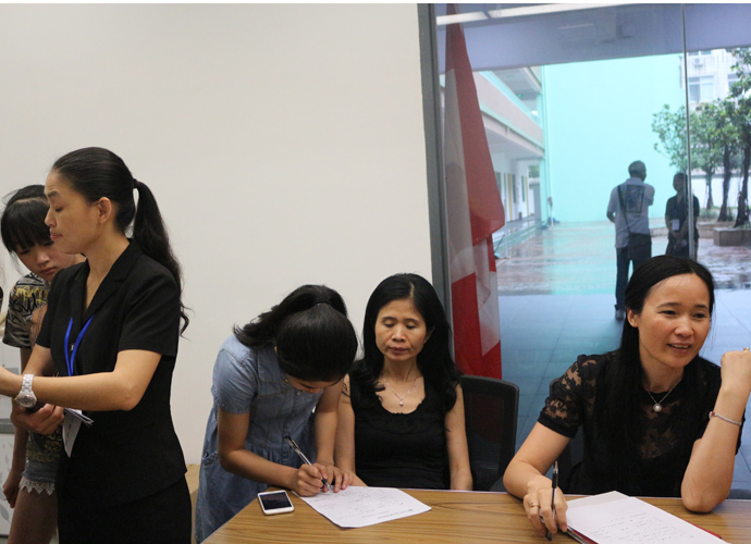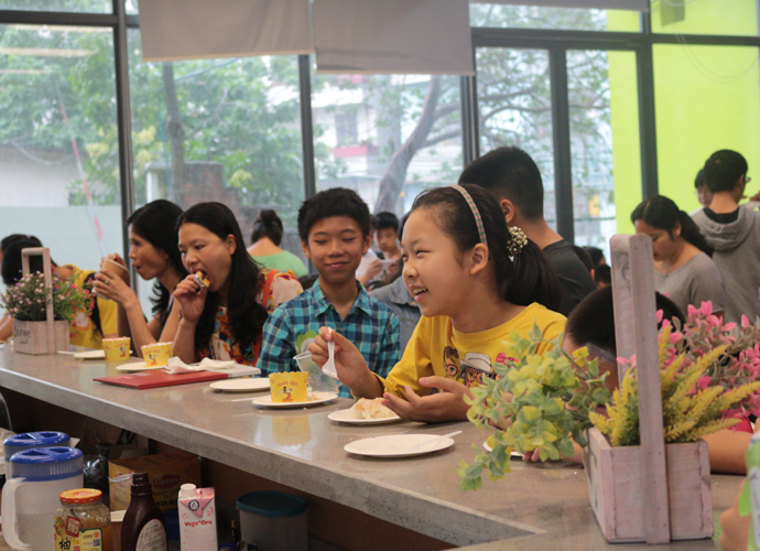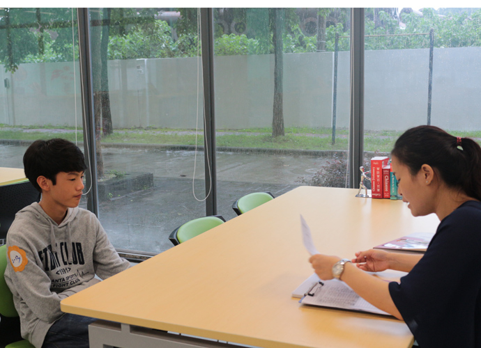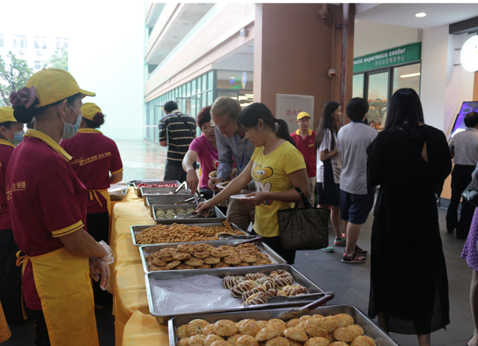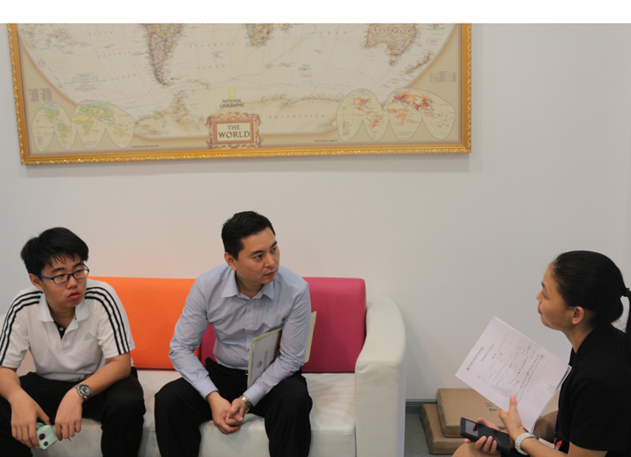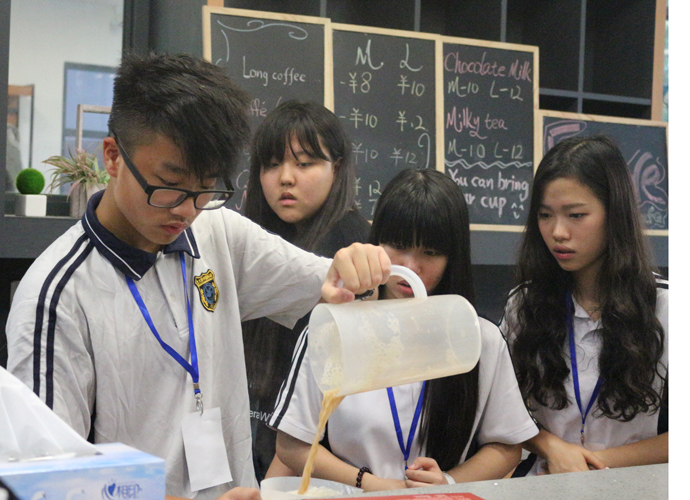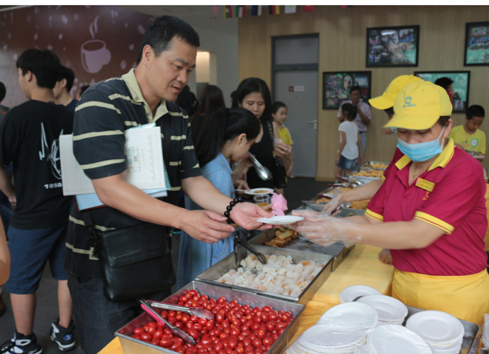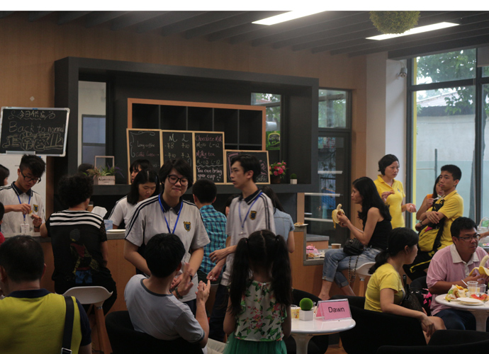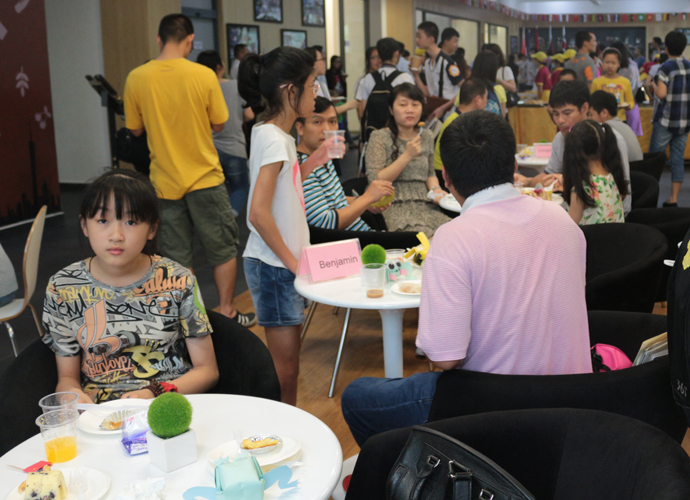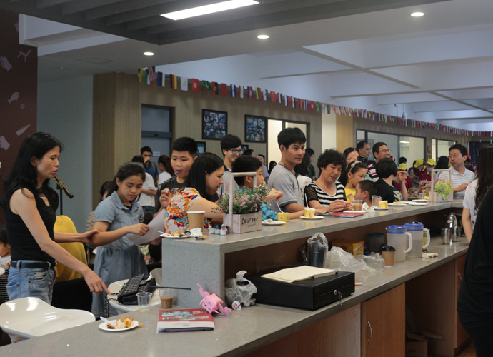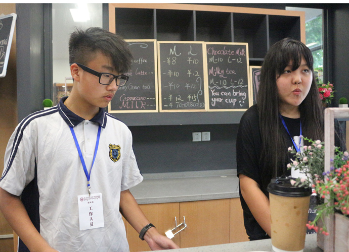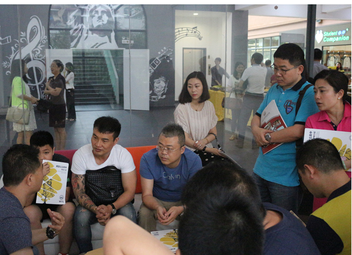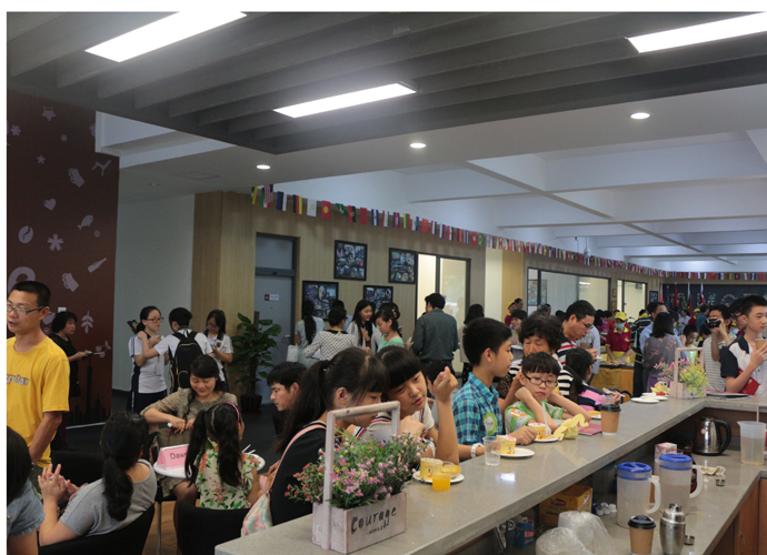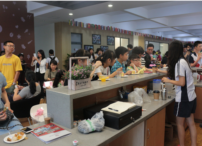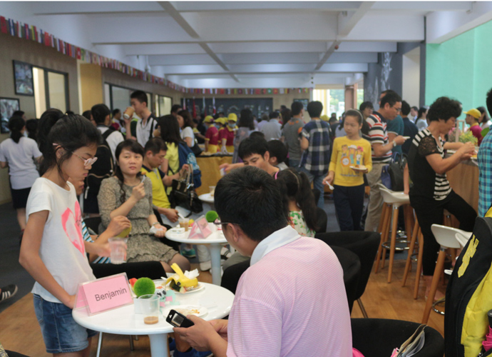 11:30,讲座和体验课程结束后,家长孩子们纷纷到各咨询室和国际部老师,国际教育专家交流互动,现场填写报名表,预约复试时间。同时,大家也在一楼大厅享用西点水果,享受学生自主经营future咖啡厅提供的优质服务。