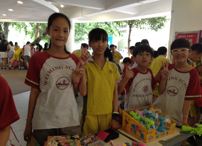 跳蚤市场,风风火火,吆喝声、叫卖声,声声不断,其中元培班林秉承十分钟就卖光自家制作的薯条,陈鑫的偶像身份证最受中学生欢迎!在活动过程中,孩子们团结一心,热情待客,文明推销物品。通过这次活动,孩子们的交流沟通能力、理财能力以及市场销售能力都得到了提高。 孩子们在跳蚤市场活动中,体验劳动创造价值的乐趣和成就感,认识到买卖的乐趣,培养了孩子们的理财概念,体会到生活的实际意义,并且让他们从小就懂得勤俭。最后同学们把自己的义卖所得全部捐献出去,为这次开心而有意义的活动画上了完美的句号。