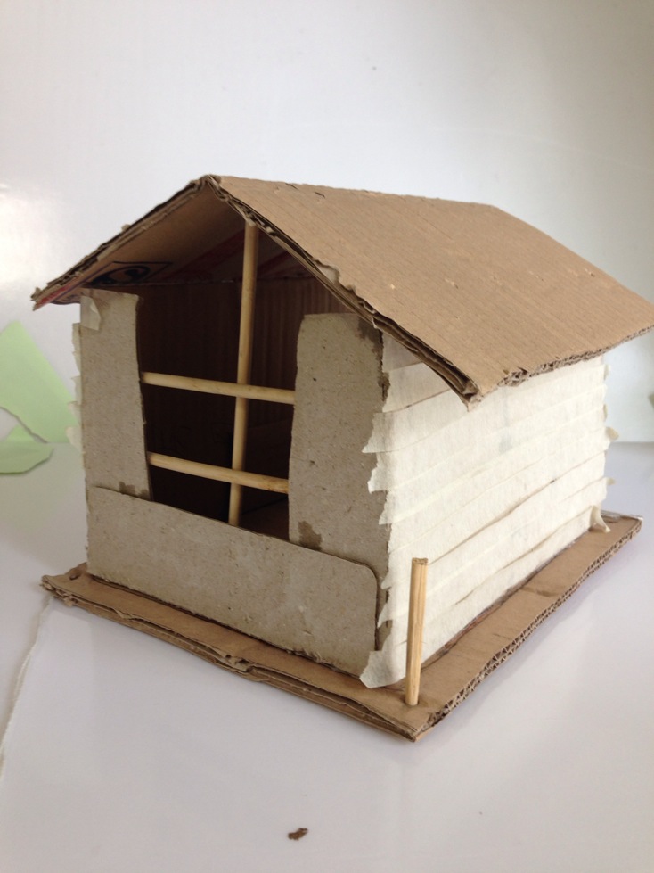 李智琛、曾俊英 作品:手工制作纸皮《杆栏式房屋》 指导老师:何卓文