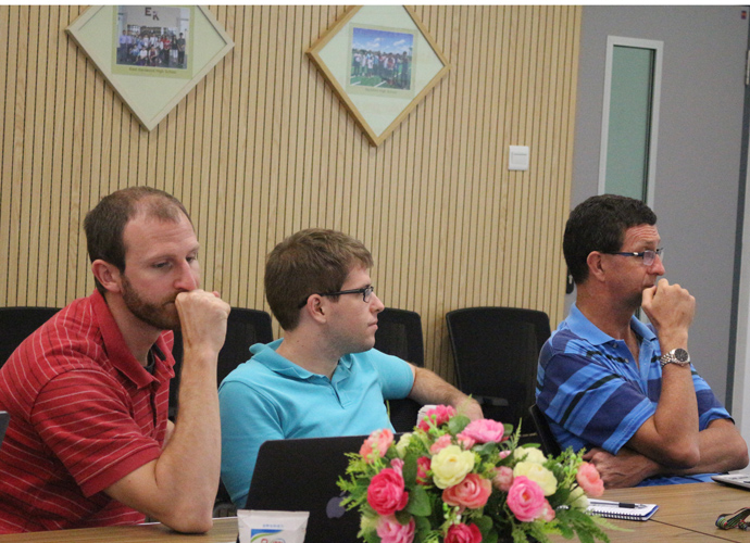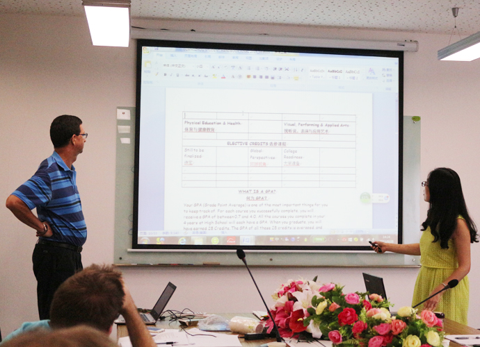 下午,外方外教主任Trevor 先生和陈怡老师解读了学生手册,所有老师对学生行为规则进行讨论。中外方搭班班主任对学生管理问题进行了深入沟通。