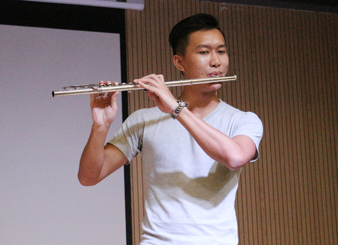 1号晚上7点,广州珠江交响乐团的老师给同学带来精彩的乐器表演,同学们现场填报选修艺术课志愿表。