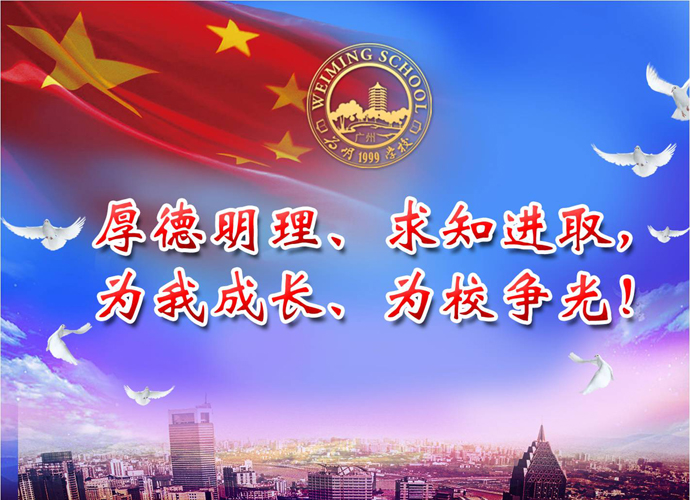 王校长说,为明广州学校的成功,既是缘于一批批领导、老师的拼搏和奋斗,同时,也缘于北京为明学校的巨额投资、升级改造,让我们的校园一年比一年美,一天比一天靓。同学们已经看到了,我们小学部的教室全部进行了升级改造,许多场室更换了新空调,小学部又增加了一个科技实验室了,咱们的升旗仪式现场也安装了一个高大上的彩屏了,可以说,咱们的校园一年比一年更美了!王校长重点向师生员工解读了为明广州学校新的校训“厚德明理、求知进取”,并希望孩子们能将校训铭记于心,将校训运用到自己学习生活的点点滴滴,规范自己的行为习惯,做为明好少年!