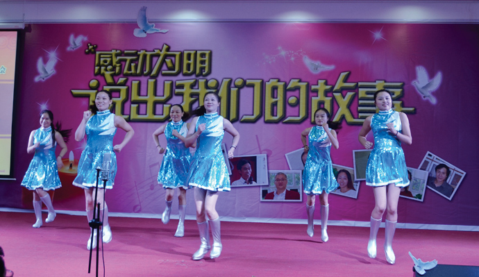 除了教学队伍外,生活教师的作用与魅力不可小视。她们从学生的行为习惯、纪律作风入手,保障学生的衣食住行,给予学生家一般的温暖。舞台上他们身着闪亮的服饰、踏着活力的舞步,展示了她们动感青春的一面。