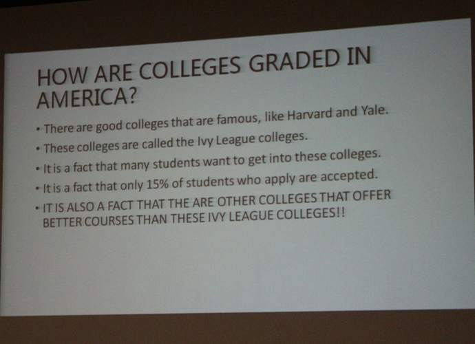 2015年10月14号周三晚上,广州为明国际学校为明大讲堂新学期开讲,并由此拉开了学业及职业规划系列活动的序幕。第一讲由外方学术主任Trevor主任主讲,他主讲的题目是《COLLEGES IN AMERICA AND CAREERS(美国大学及职业)》。