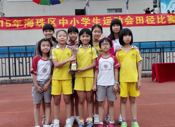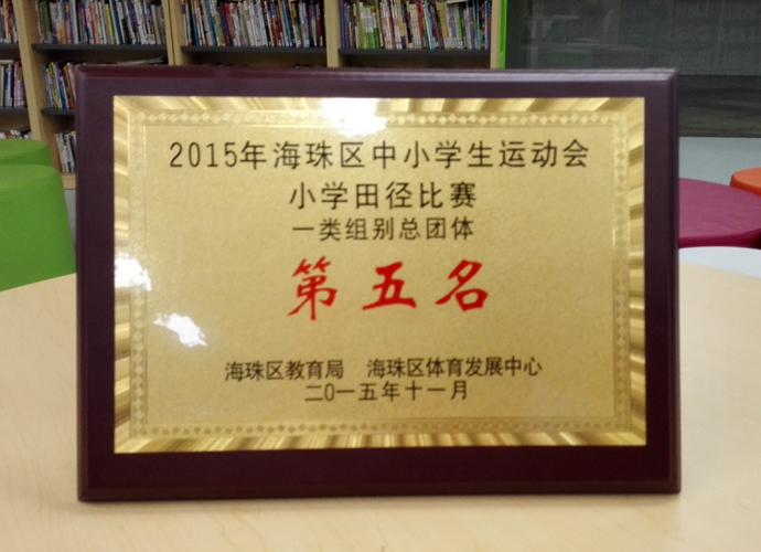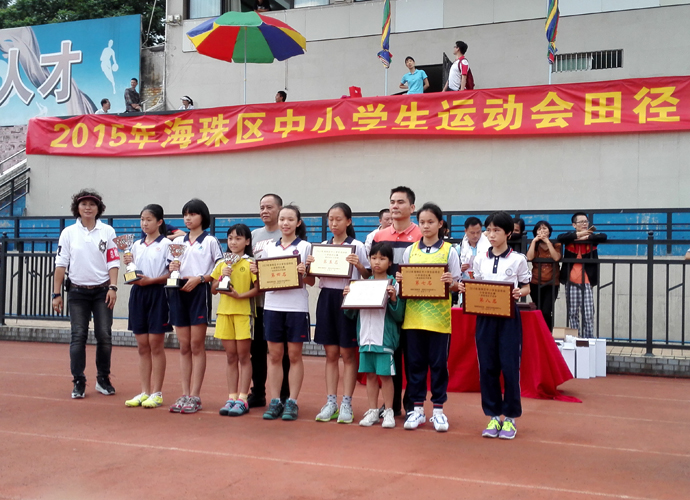 2015年11月16日海珠区中小学生田径运动会在宝岗体育场隆重启幕,一类小学近六百名运动员参加,规模空前庞大。我校小学部18名运动健儿参加了此次盛会,获得多个单项奖及女子团体第三名、团体总分第五名的好成绩,也创造了历年来最好成绩。
