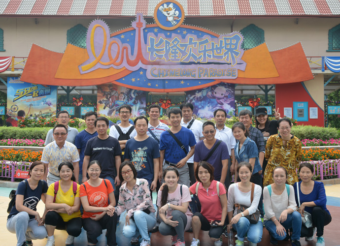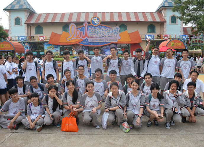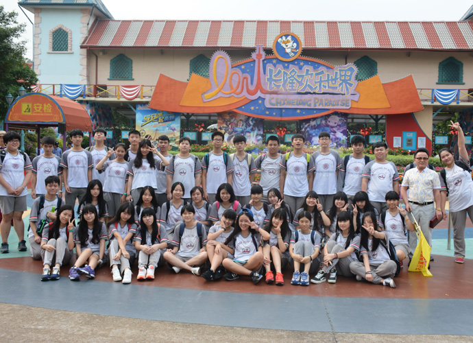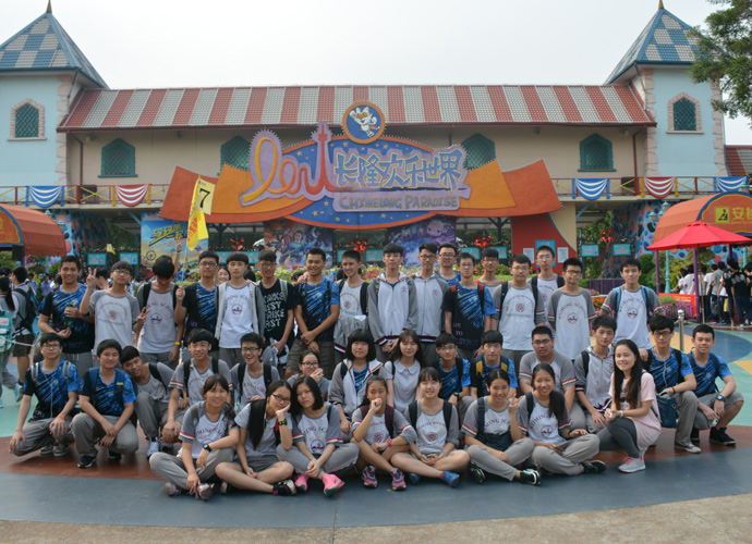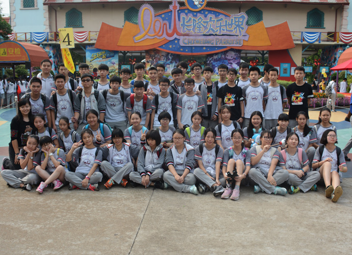 虽序属深秋,可由于地域原因,汉溪长隆欢乐世界的大门四周仍然是绿草如茵、大树成荫,附近的空气十分清新,令人心旷神怡,使同学们的身心从这些天紧张的学习中挣脱出来。