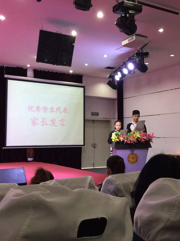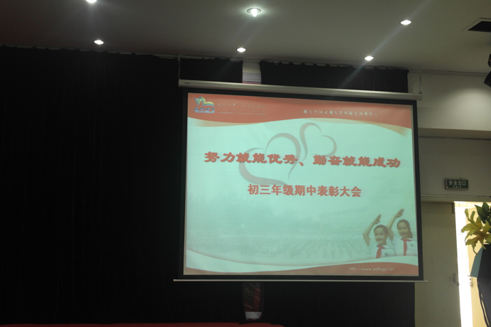 11月26日星期四,初中部九年级在报告厅举行了期中表彰大会。这是初三年级家长开放日活动的重头戏。