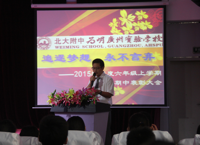 早读课过后,六年级的孩子们怀着期待的心情走进报告厅,参加由莫俊峰老师主持策划,以“追逐梦想,永不言弃”为主题的期中考表彰大会。根据同学们半学期来德智体美劳五个方面的综合评定,大会一共颁出“进步突出奖”“单科状元奖”“班级前五名”等多项大奖,老师们宣读颁奖词,获奖同学登台领奖,未获奖的同学满怀期盼,更暗下努力的决心,与会的领导、老师和孩子们一起分享美妙时刻,欣慰之情溢于言表。