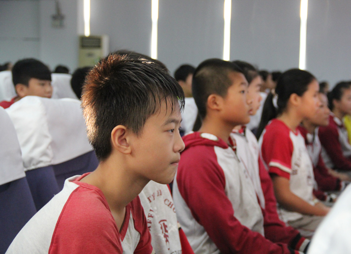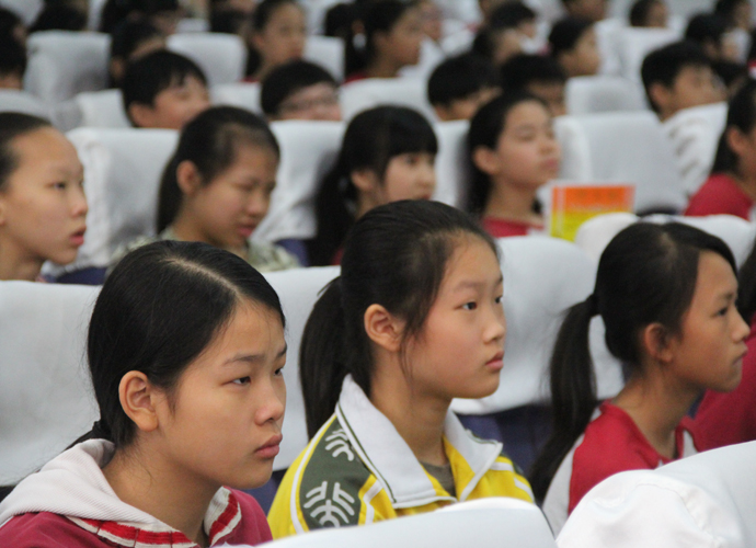 最后,初一元培班级长何卓文老师以“‘元’为明广州梦,培全能学生路”为主题,从元培班设置的目的、课程和活动三个方面,图文并茂、声情并茂和家长们分享了现初一元培班过去一年来的成长收获和家长以及社会的认可。