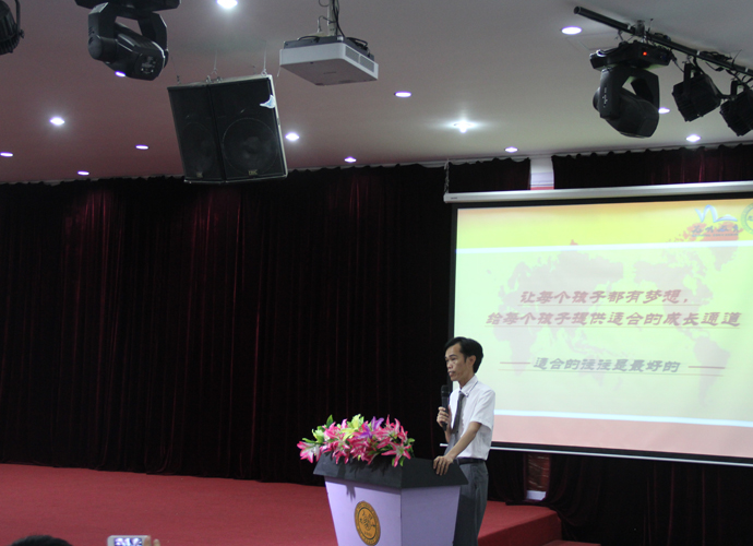 接着,钟和军副校长发表以“一切为了孩子更好地发展”为主题的讲话。钟校以自己的小孩为实例,说明不同年龄的孩子有不同的特点,不同年龄的孩子应有不同的教育。通过大量的数据说明当今家长对现阶段孩子的期望,并从校风学风、师资力量、升学率、办学声誉、硬件设施等各方面证明,我校具有“一切为了孩子更好地发展”的实力。不仅如此,钟校还向家长汇报了开学至今六年级小初衔接所开展的一系列工作,及其目的和意义。钟校总结:“没有优劣,只有适合。只要相信学校,相信老师, 相信自己,相信孩子,每个孩子的发展都可以最优!”