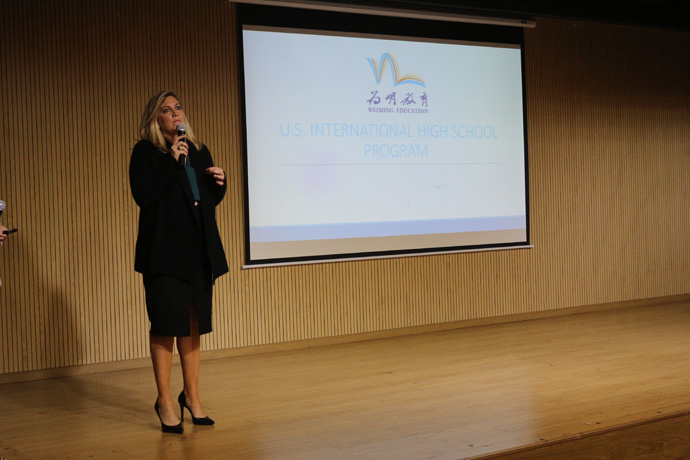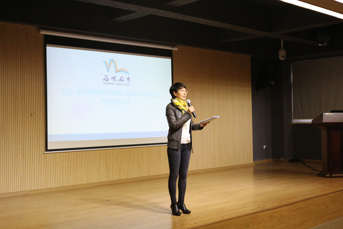 紧接着,Elaine女士向在场的家长和学生表示:每个在美国高中学习的学生都会被分配到一位驻美中方教师,负责关心他们的日常生活,让孩子们即使人在异乡,也能感觉到家的温暖。而为明学习中心作为中国唯一一家能在美国建立全员配备、双语、双文化的学习中心,则提供了对孩子在学术方面的支持,保证孩子不仅在生活上,还是学习上,都能保持愉悦的态度。