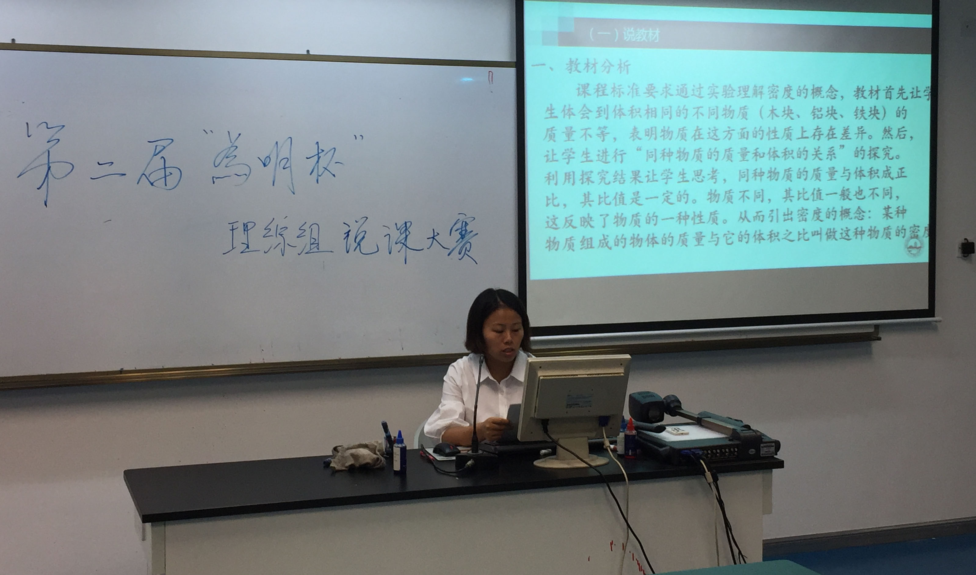 第9周周五理科综合组在物理实验室开展了说课活动,活动邀请了督学杜老师亲临指导。参赛教师从思想上高度重视此次说课活动,他们查阅资料、与人研讨、制作课件、对说课稿反复斟酌,精心准备。比赛过程亮点较多.