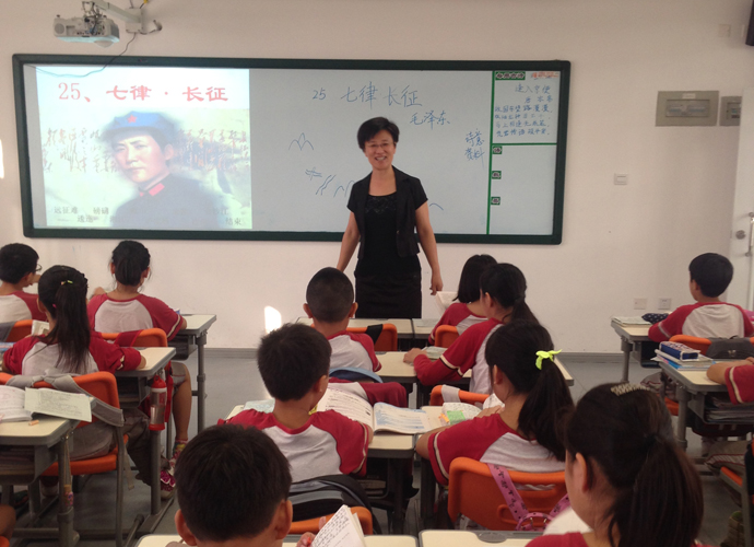 马晓虹老师的《长征》一课以人为本,还课堂于学生。教给学生“明诗意 查资料 品诗句 悟精神 ”的学习方法,教师陪伴学生在情境中体验,引导学生抓住语言文字谈体会、细分析、感情读。不仅体会情感,而且掌握文中表达的情感方式,同时也培养了学生良好的读书习惯。这样,把教师主导作用充分体现在学生主体作用的发挥上,使学生学得自在,学得轻松。