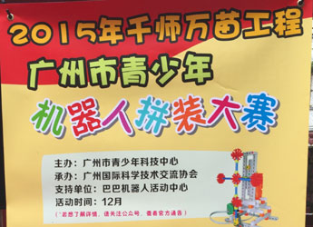 2016年1月3日,由广州市科协、市青少年科技中心主办,广州国际科学技术交流协会承办,巴巴机器人活动中心协办的2015年广州市千师万苗青少年机器人拼装大赛在广州市天河区昌乐小学进行总决赛。我校初赛胜出9名优秀选手参加市赛总决赛,经过激烈的竞赛,最终MC队获得二等奖和最佳团队奖,一片碧蓝队与电驰队获得三等奖的优异成绩,陈慧和巫丽清老师获得优秀辅导员的光荣称号。