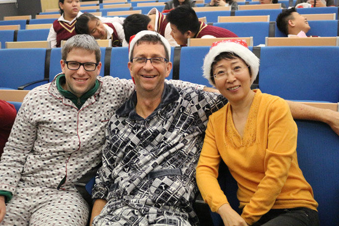为了让孩子们体验到更加贴近美式生活的圣诞气氛,在外教的鼓励下,老师和学生们都纷纷穿上了自己睡衣,以一种和家人团聚在一起的温馨心情度过这个舒适暖心的圣诞联欢。