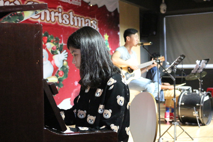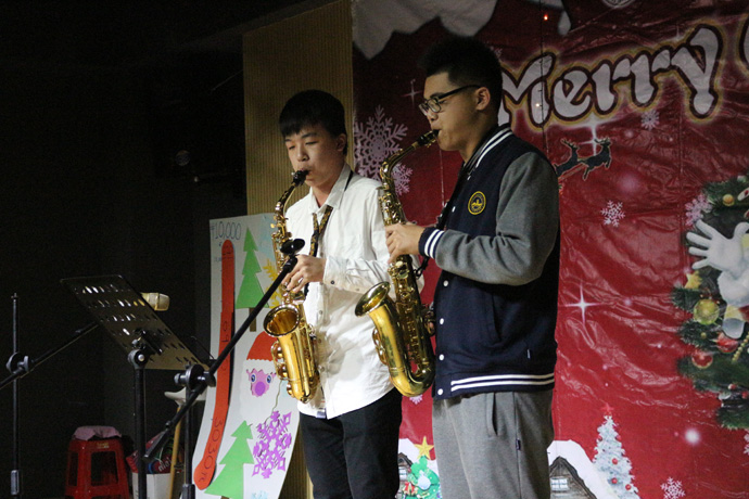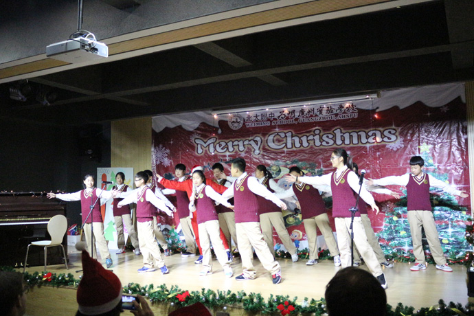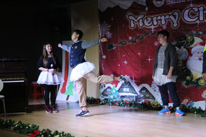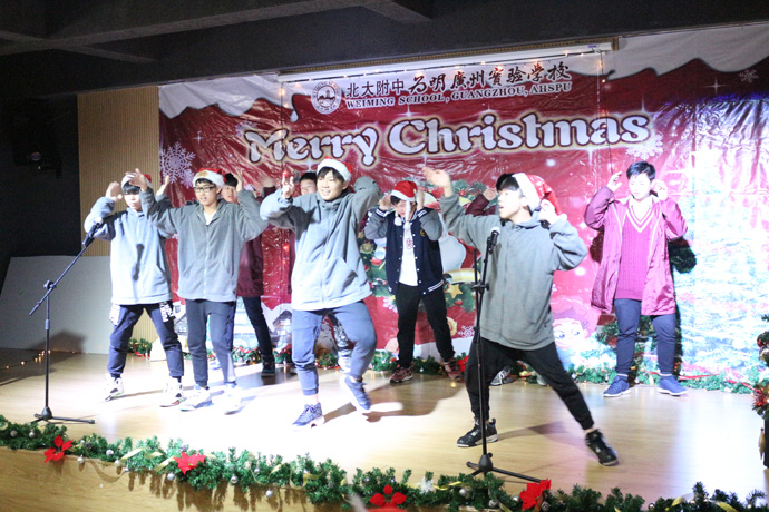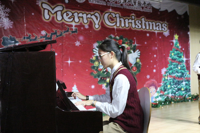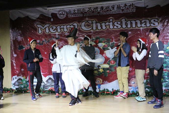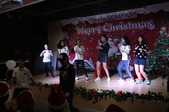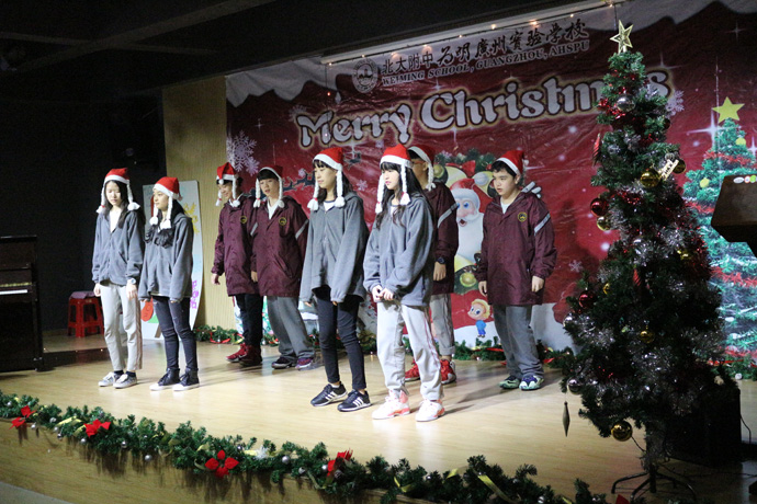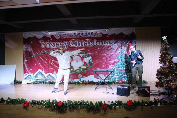 在一阵紧锣密鼓的准备之后,为明国际部圣诞联欢表演正式拉开帷幕。首先出场的是来自七年级的孩子们,他们准备的开场歌舞表演《Santa Claus is coming to town》把轻快的圣诞的气氛带给了大家,紧接着的来自十年级1班同学们的诙谐有趣的话剧表演《Frosty the snowman》则是给大家带来了阵阵笑声;而乐器演奏当然也不能少,在随后的乐器串烧和钢琴独奏中,同学们丝毫不怯场,纷纷在舞台展示起自己的演奏实力。而分别来自八年级,九年级以及学生政府的歌舞表演把现场的气氛拉向了最高潮,现场欢呼声连连,家长、同学和老师们都沉浸在这快乐而温馨的圣诞气氛中。