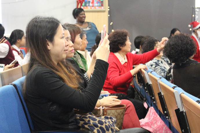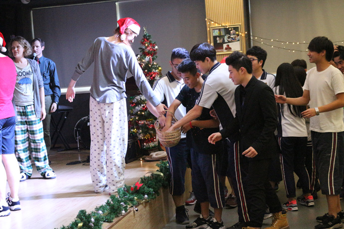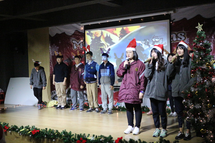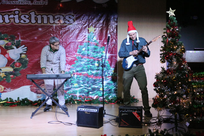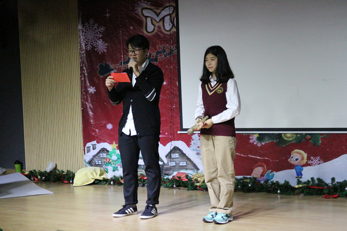 不知不觉表演已接近尾声,在Jacob和Nathan的《小苹果》和《海阔天空》演唱完毕后,现场进入同学们期待已久的游戏时间,同学们纷纷上前和老师们互动起来,玩起了游戏,在一片温馨愉快的气氛中,我们的圣诞节庆祝活动也缓缓拉下了帷幕。