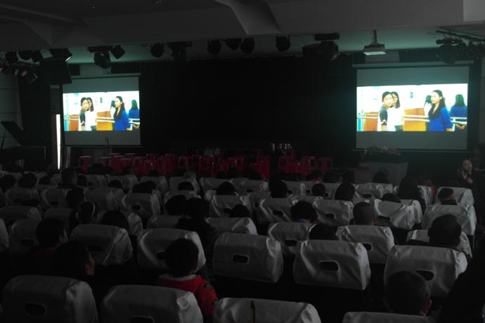 首先播放了本学期艺术特长课视频。视频向大家展示了这学期来,同学们在课堂、活动和艺术方面的表现,展示师生的和谐课堂、和谐瞬间。从一节节文化课到丰富的艺术特长课……一件件,一幕幕,唤起了孩子的回忆,也让家长真切地了解、感受到孩子们的学习生活情形。欢笑声一片,掌声自然响起。