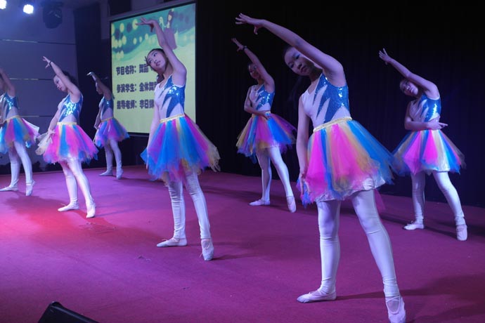 今天的节目丰富多彩,计算机班还展示了孩子们的精彩:女孩子日的网页制作及视频制作,小提琴老师和同学协奏《很久很久以前》,吉他弹唱《红河谷》,网球班表演了《阳光足球秀》和《网球秀》。