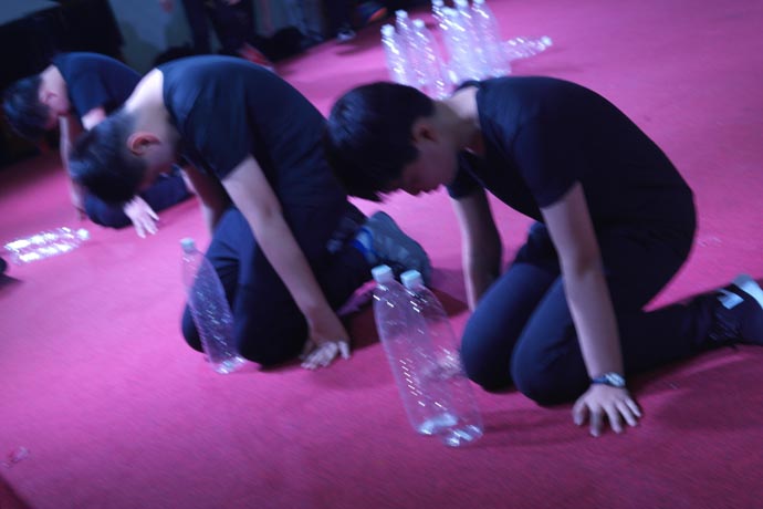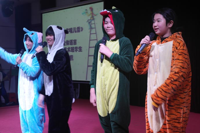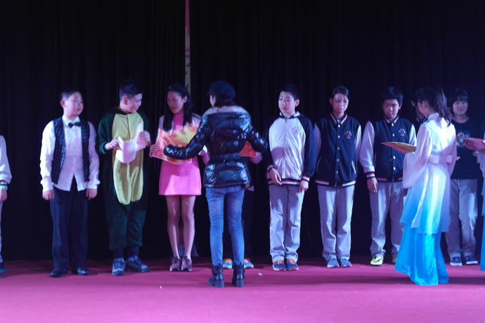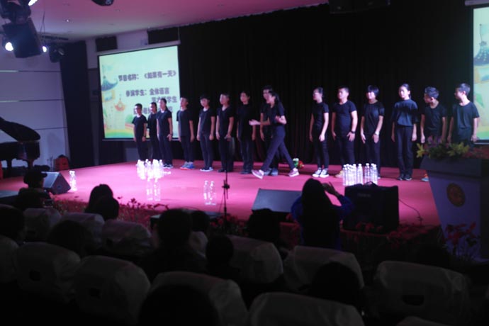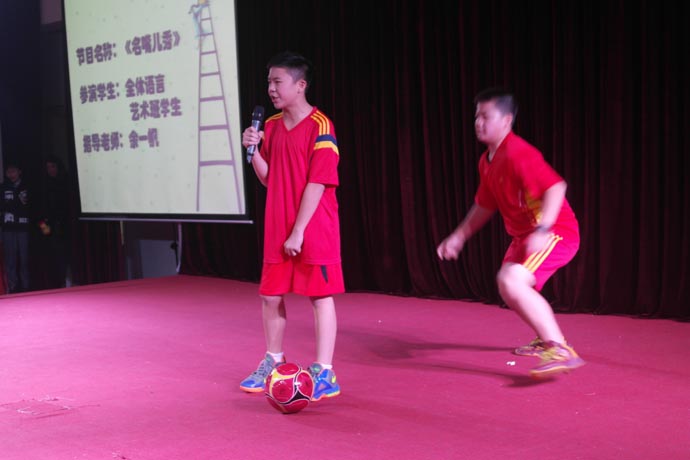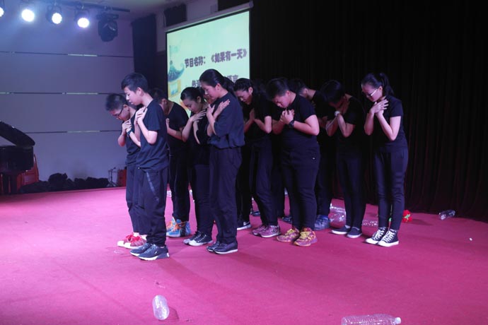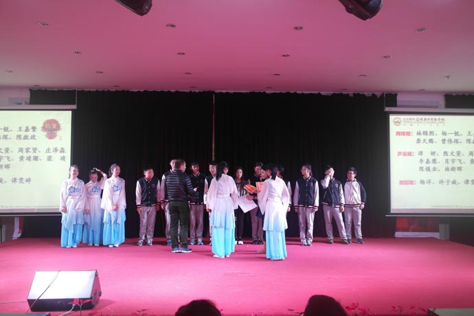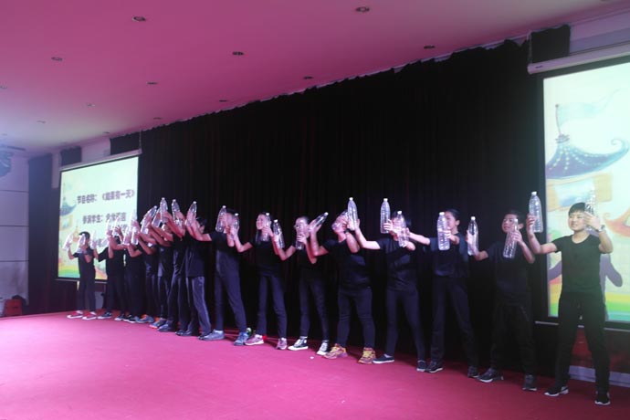 第四个环节是演讲班余一帆老师指导的《如果有一天》和《名嘴儿秀》,这两个节目让盛典再次掀起高潮。在领导的重视下,学校的舞蹈和语言艺术被纳入了常规课程。语言艺术课是区别于语文和戏剧表演的专业课程,是针对学生的播音主持以及各类语言艺术形式的训练。为了这次比赛,余一帆老师反复推敲剧本。校领导和班主任给予了有力的支持,利用中午、晚自习时间刻苦训练,演出的同学都付出了艰辛的努力。他们的表演迎来热烈的掌声和现场一片欢呼声。