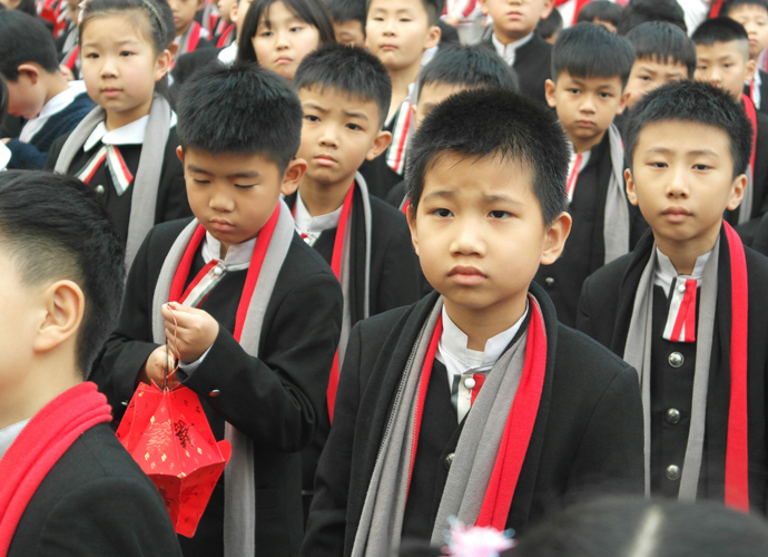 还有学生说:“开学礼让我觉得很特别,老师对待我们就像自己的亲生孩子一样,我们特别幸福!同时,互相鞠躬让我们学会了尊重,尊重老师,也尊重自己!”