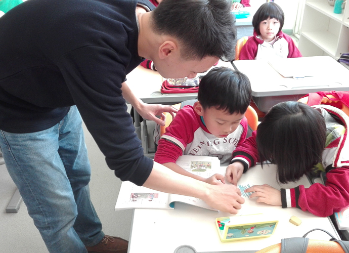 谭兆佳老师虽然年轻,但想法多多,他特别注重课前的复习,从9+1、9+4等孩子们学过的进位加法进行知识迁移,为今天课堂学习的重难点进行铺垫与突破。尤其他在课堂中特别注重如何引导孩子,如何摆15个圆片最能让人一眼看出有15个;如何用圈一圈的方式让人更容易理解如何减9等。