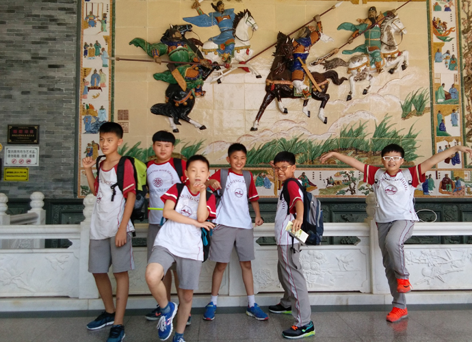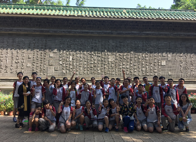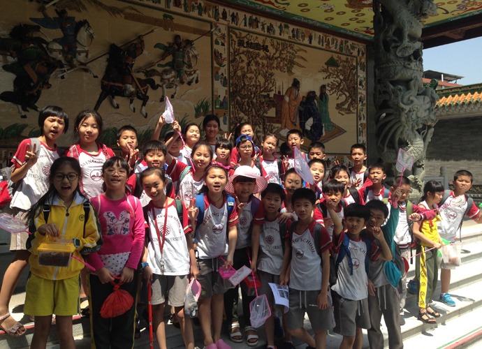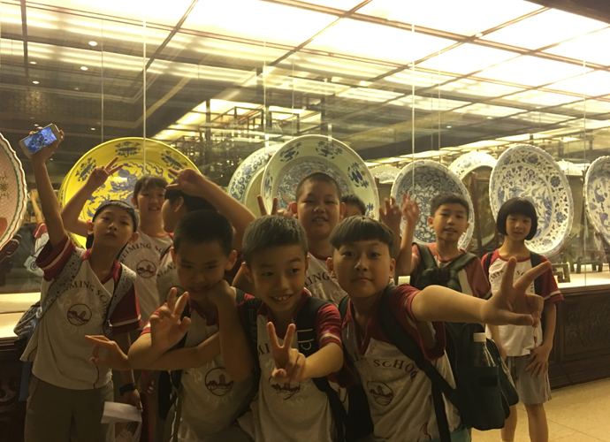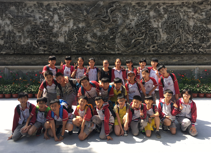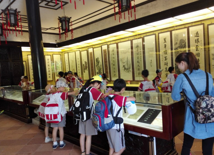 三至六年级的目的地则是颇具特色的艺术园林——宝墨园。宝墨园艺术气息浓厚,园中陶塑、瓷塑、砖雕、灰塑、石刻、木雕等艺术精品琳琅满目。惊世之作,当数已列入大世界吉尼斯之最的瓷塑浮雕《清明上河图》和巨幅砖雕《吐艳和鸣壁》。园区内,治本堂、宝墨堂、龙图馆、赵泰来藏品馆设有专人讲解,帮助孩子们了解不同时期藏品的历史及价值。宝墨园除了看宝、识宝,同时还能“寻宝”。游玩之前,龙主任准备了一套寻宝题,希望孩子们能按图索骥,增强游玩的趣味性。孩子们根据讲解员的讲解,不仅认识了造工精细的各类藏品,同时还寻找着图上的“宝藏”。