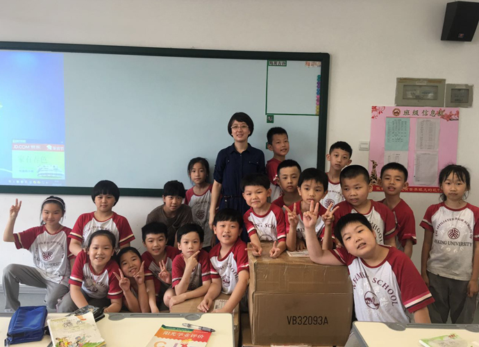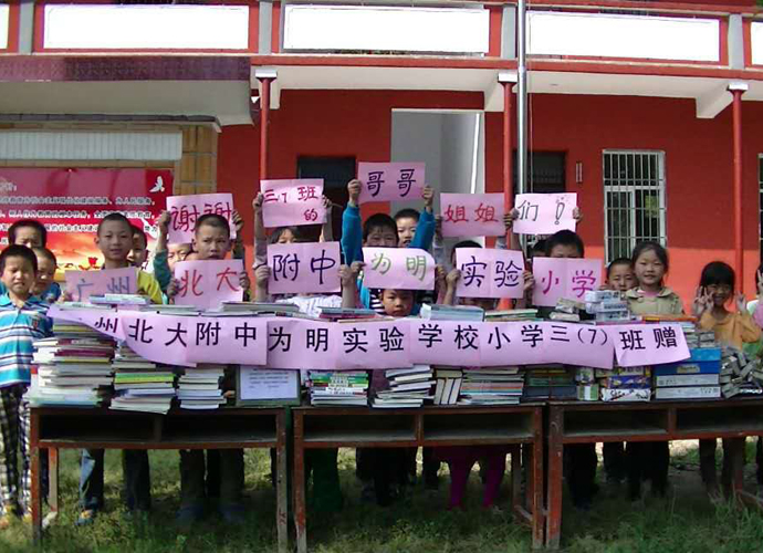 5月11号,这些经过三(7)班学生们精心挑选的读本终于送到了翟洼小学孩子们的手中!对方学校的老师欣喜地说:“我的学生们从没见到这么多课外书!这么精美!太感谢了!”“感谢北大附中为明学校的老师和学生们!”