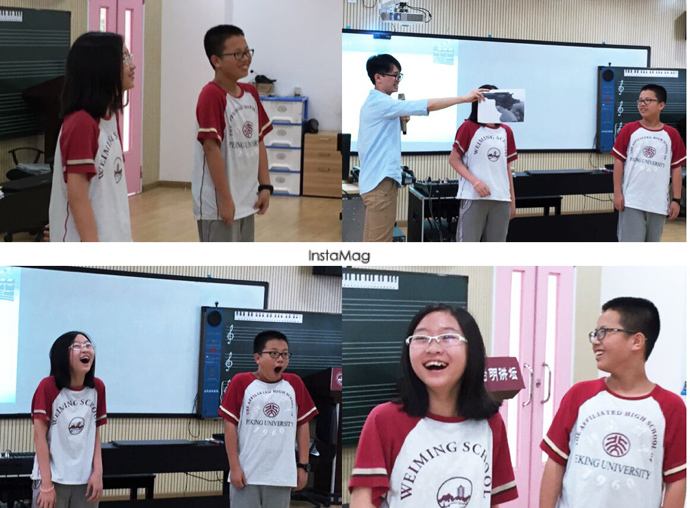 电影已经历了百多年的历史,但问起“电影是什么”?对于看过不少电影的六年级学生来说,未必会有一个比较全面的答案。刘老师通过提问的方式,一步一步引导,由浅入深地带出电影的基本要素:影像和声音。从视觉后像、视觉暂留现象、似动现象、声音的变化、不同拍摄手法营造人对声音的不同感受等方面让学生去了解“电影是什么”。简而言之,电影的媒介是光,电影是声画在时空里的运动,是穿梭时空的光与声。从概念方面解释,电影是根据视觉暂留原理,运用照相(以及录音)手段把外界事物的影像(以及声音)摄录在胶片上,通过放映(同时还原声音),用电的方式将活动影像投射到银幕上(以及同步声音)以表现一定内容的现代技术。