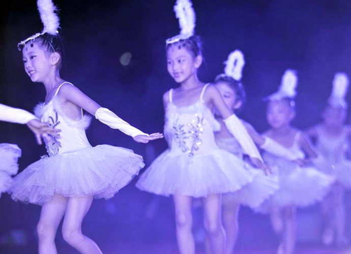 “采菊东篱下,悠然见南山”,这个画面正是白丹老师带领着孩子们感受如诗如画的田园诗歌。歌舞表演《江南》,勾勒了一望无际碧绿的荷叶,莲叶下自由自在的小鱼儿,还有划破荷塘的小船上的采莲人欢声笑语,展现了江南鱼戏莲叶之美。舞蹈《咏鹅》美丽自信又大方的小天鹅在湖中游来游去,整一篇章尽显悠然自得的田园风光。