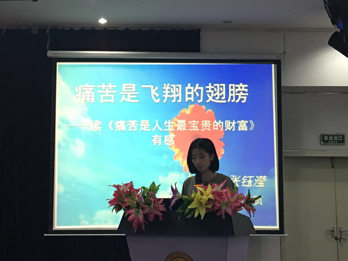 接着由年级各班代表进行分享,周家贤、张钰滢、李嘉慧、林韵怡、谭芷茵、高懿宣六位同学的《不要再做》《痛苦是飞翔的翅膀》《珍惜》《钢铁意志+毅力=成功人生》、《童年》等,就名著名篇和同学们分享了怎样做人,怎样学习,怎样去面对生活,怎样学会反思自己。