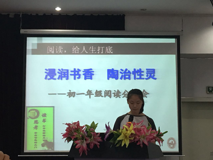 今天上午,初一年级《浸润书香,陶冶性灵》阅读分享会在报告厅隆重举行。出席会议的有:初一年级级长王延涛老师、语文教研组长陈少君老师、初一各班主任及初一全体同学。