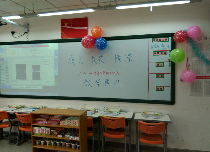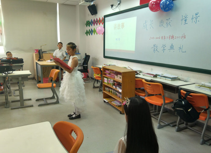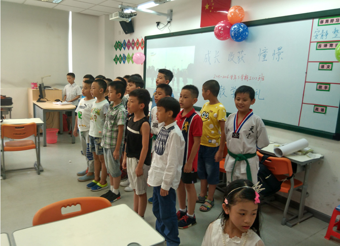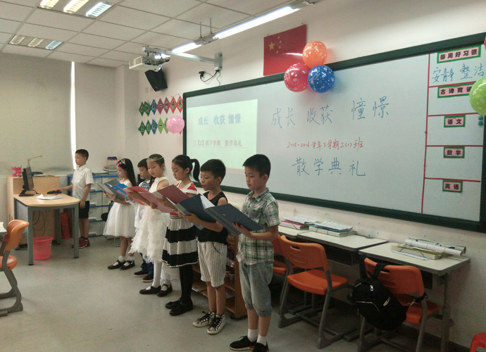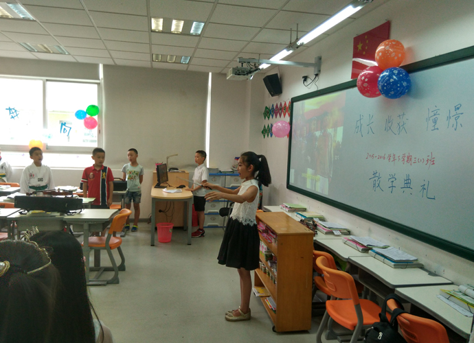 2016年7月6日,小学部三年级的全体师生及家长欢聚一堂,在各班教室举行了2015—2016学年第二学期的散学典礼。炎热的天气丝毫抵挡不了家长和学生绽放的热情,各个班级的散学典礼均如火如荼的进行着。