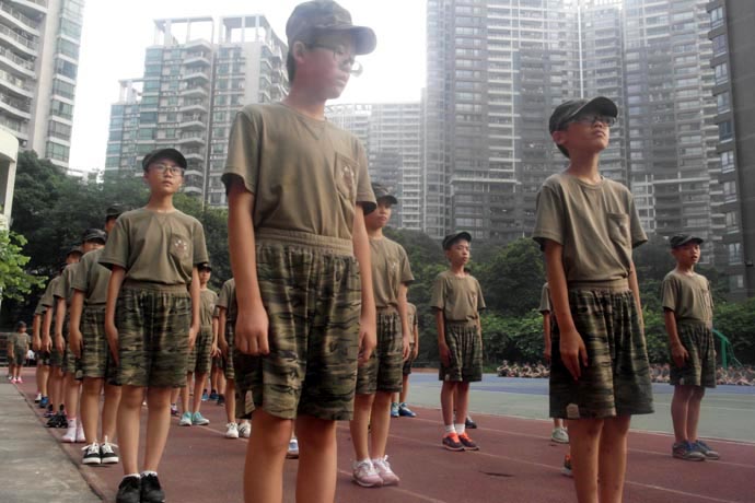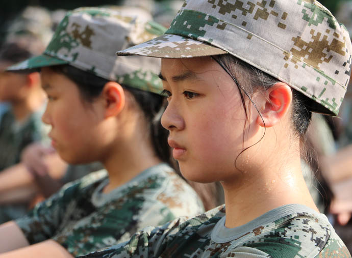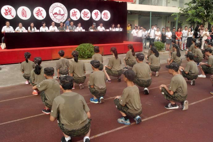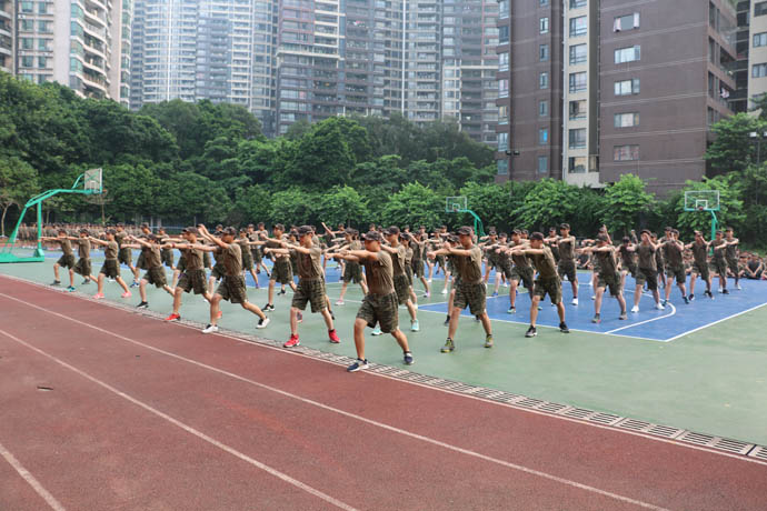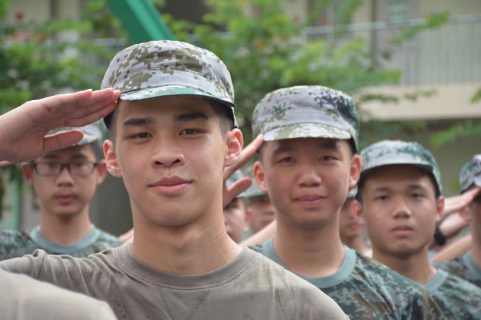 “同学们好!”“同学们辛苦了!”在广州民兵预备役训练基地曾队长的陪同下,王校长依次检阅受训方阵。王校矫健的身姿,洪亮的声音,关切的问侯,“校长好!”“为校争光!”同学们热情的问好,坚定的决心,嘹亮的声音响彻校园!