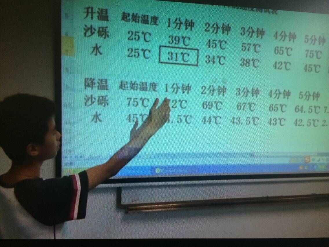 在地理曾翠眉老师的指导下,孩子们设计了这个实验,从数据等的感性认识中知道等质量的沙砾和水体在同等条件下加热(冷却),沙砾升温(降温)速度要比水体快。而大陆和沙砾有着同样的性质,海洋和水体有着同样的性质,从而研究陆地和海洋在夏季升温和冬季降温的情况。在这样的类似比较下,通过知识的迁移,我们就能把沙砾和水体在实验中表现出来的性质跟陆地及水体联系在一起,理解到海陆形成的热力性质差异带来的气温、气压及风向的影响,从而帮助大家理解季风气候的成因,提高学习地理的兴趣和能力。