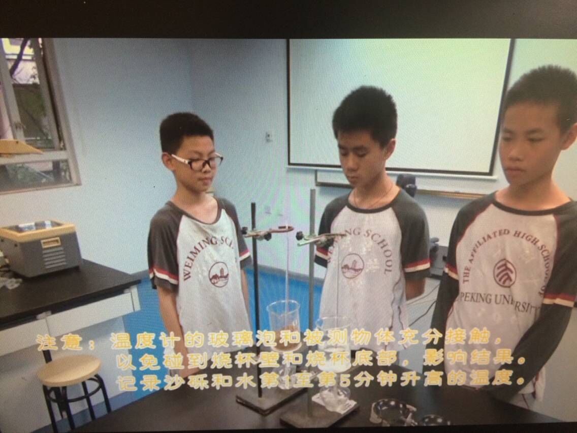 初二元培B班的陈阳、吴家辉、易胜蓝同学制作了科学实验DV《水体和沙砾的升温降温速度测试》,获得广州市二等奖。