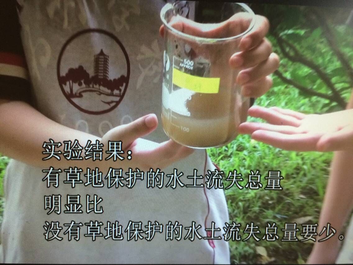 黄土高原水土流失严重使得其地表形成千沟万壑的景观,母亲河黄河成为了世界上含沙量最大的河流。然而通过查找资料我们可以知道,黄土高原并不是所有区域的水土流失都很严重的,有植被保护的黄帝陵所在的区域可见清澈的潺潺流水。因此我们可以得出,让黄土高原区域有足够的植被保护,是解决黄土高原的水土流失的根本办法。为了验证这一点,在地理曾翠眉老师的指导下学生做了这个关于水土流失的实验。我们选取了两块土壤,一块有茂密草皮,一块几乎是裸地。我们设置两块草皮处于同一坡度,受同样强度的雨水冲刷同样时间,收集流失的水土。通过称重,我们发现有草皮保护的那块土壤,它流失的水土明显比没有草皮保护的土壤要少。从而证明植树造林对解决我国水土流失的有效性,也证明保护森林保护植被的重要性和必要性。