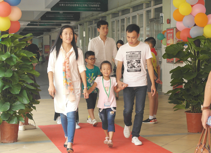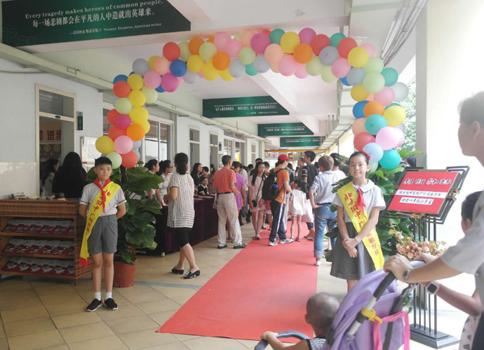 9月1日,为了迎接新同学,北大附中为明广州实验学校早早做好了准备:一年级的全体教师特意搭建了一个以红地毯、五彩气球组成的别致长廊,老师们现场派发书包,来迎接入学的这些一年级小萌娃……下午两点,家长和孩子们大手牵小手,陆续到达学校,有家长打趣道:“哇,这个学校太美了,要不我来上学你在家吧?”孩子回答说:“不嘛,这是我的学校!”。看到孩子们开心的笑脸,家长们对孩子们的小学生活充满了信心。