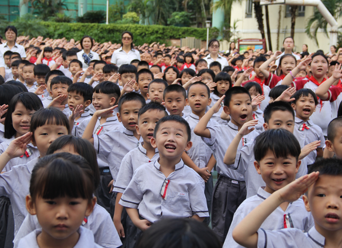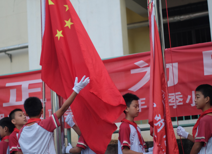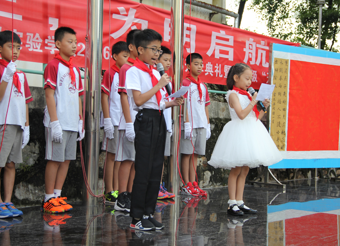 随后,龙主任也向孩子们献上寄语。她首先对国旗台上气宇轩昂的“人”字做了深刻的解读,希望大家在人生的启蒙阶段首先要学会做人,知道做人要堂堂正正地立身,要像“人”字那样顶天立地。接着向孩子们展示了篆书的“学”字和甲骨文的“习”字,告诉孩子们,只有“学”和“习”有机地结合,才能掌握本领,形成能力。本学期,老师们把课堂交给了孩子们,提倡合作、探究,提倡自主学习。希望帮助孩子们在小学六年能做到行为自律、学习自觉、活动自主、生活自理,成为爱学、会学、主动学的优秀为明小学生。
